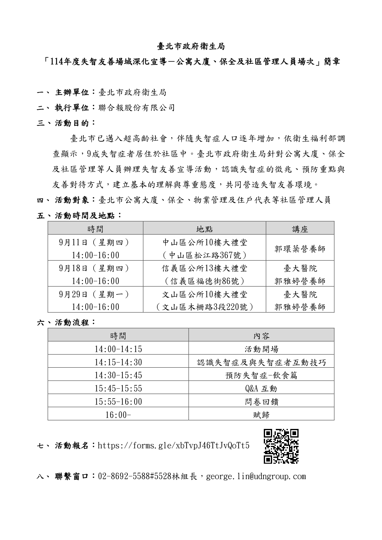 1. 9月11日(四)下午2時至4時假中山區公所10樓大禮堂(